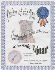Customer Service and satisfaction are of utmost importance to Realty Connections. Customers Ledean and Carolyn Weller presented the above certificate to Connie for demonstrating excellent client relations. |